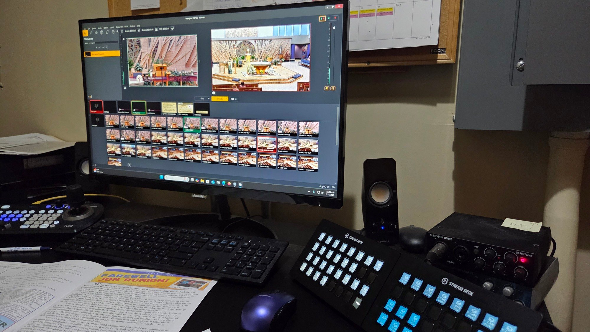 The Technology Ministry was formed in 2018 and when Covid hit in 2020, the ministry expanded rapidly to reach out to our shut-in parishoners in both churches. Currently, under the direction of Karen Sturgeon, the technology ministry has 12 volunteers who work to livestream a minimum of 2 weekend Masses, as well as a daily Mass on weekdays. Upon request, we also live stream funeral Masses and weddings. Many parishoners have expressed their appreciation, especially when they can't attend in person due to illness or if they are out of town.